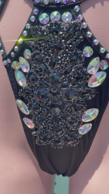 Styled with rhinestones, cup chains, applieques and chain trims.